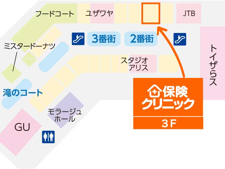 | 〒346-0106 埼玉県久喜市菖蒲町菖蒲6005番地1番 モラージュ菖蒲 3階 |
