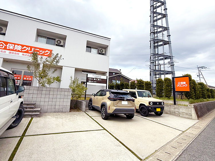 駐車場完備。店舗前の駐車場をご利用いただけます。