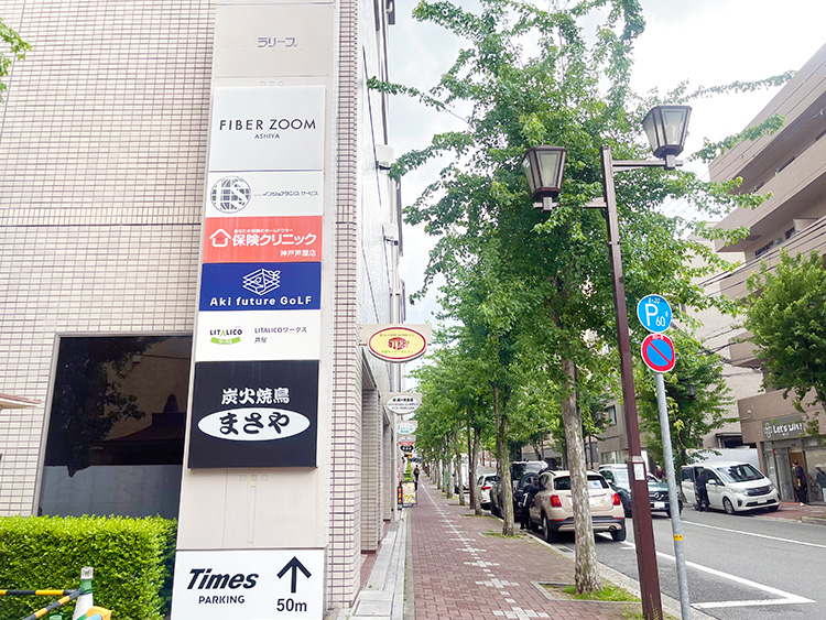JR芦屋駅北口を出て、駅前通り徒歩5分の立地です。