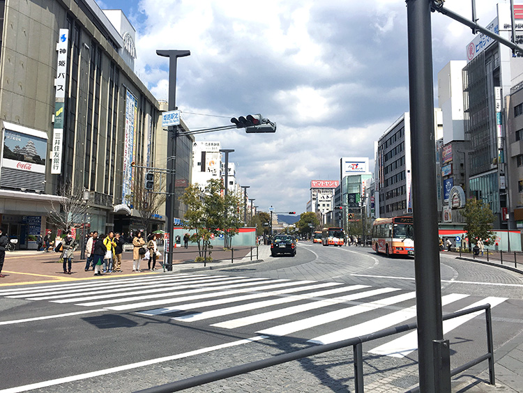 姫路駅中央口より、大手前通りを姫路城方面へまっすぐお進みください。「ヤマトヤシキ」が目印です。