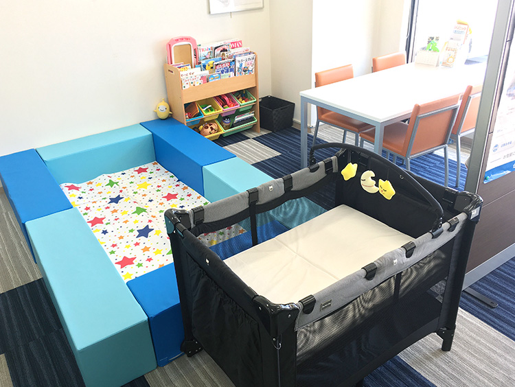 キッズスペースは、ベビーベッドも完備。赤ちゃんから小学生まで、安心して遊んでいただけます。