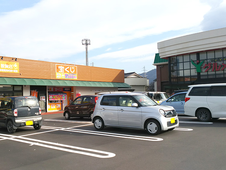 駐車場完備。お買いものついでにお立ち寄りいただけます。