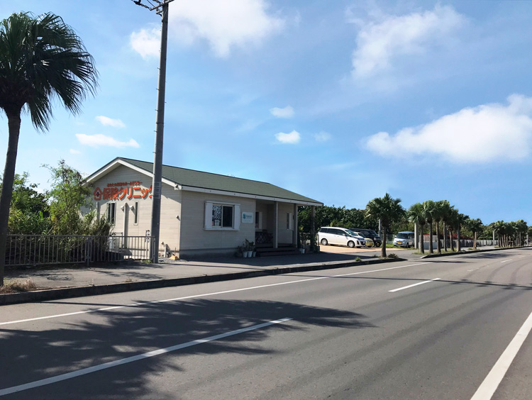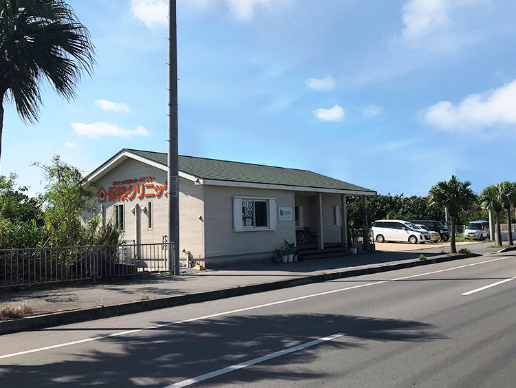 国道390号線沿いに『保険クリニック』と大きく書かれた社屋が見えます。向かいにある真栄里公園が目印です。