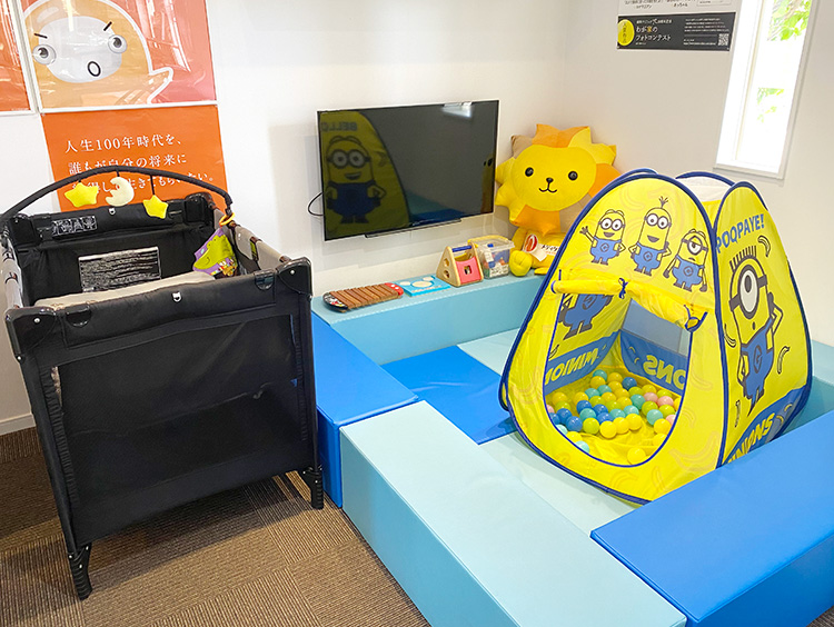当保険ショップでは、小さなお子さま連れでも安心してご相談いただけるようキッズスペースを完備しています。施設内には「授乳室」や「ベビーベッド」もございますので、ご家族皆さまでも安心してご来店いただけます。