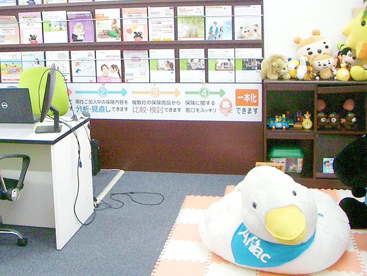 当保険ショップでは、小さなお子さま連れでも安心してご相談いただけるようキッズスペースを完備しています。駐車場もご用意しておりますので、お車でのお越しも便利です。
