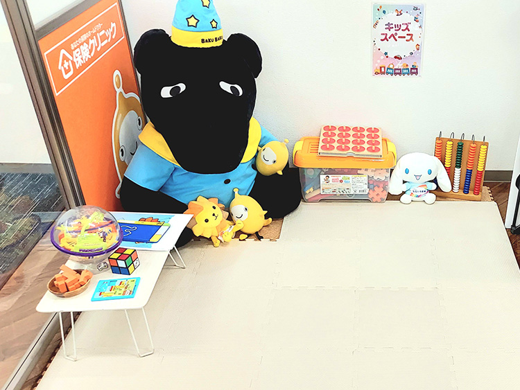 当保険ショップでは、小さなお子さま連れでも安心してご相談いただけるようキッズスペースを完備しています。駐車場もご用意しておりますので、お車でのお越しも便利です。