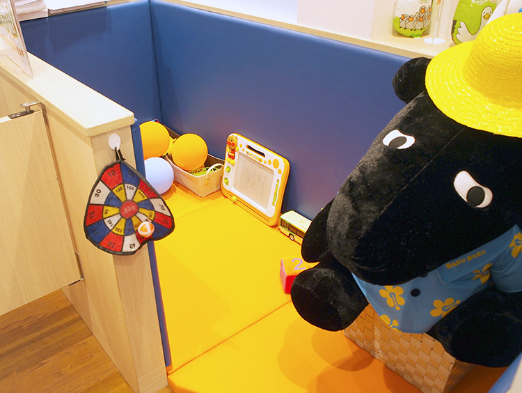 ご相談ブースの近くに、お子様が楽しく安全に遊べるキッズスペースも完備。