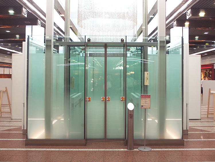 地上からサンライト広場へ降りるエレベーターがあります。ベビーカーをご利用の方はこちらをご利用ください。