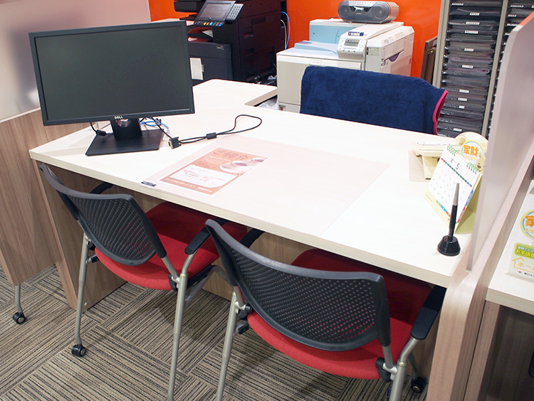 ビックカメラ隣「フロム中武」の3階にございます。のぼりエスカレーター3Fのオレンジのガラス面が目印です。