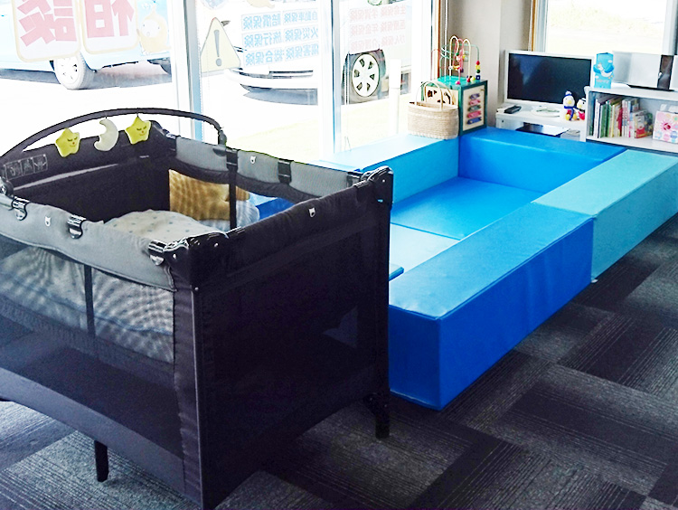 当保険ショップでは、小さなお子さま連れでも安心してご相談いただけるようキッズスペースを完備しています。駐車場もご用意しておりますので、お車でのお越しも便利です。