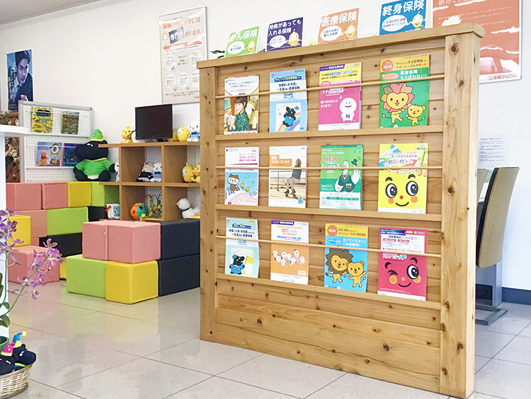 当保険ショップでは、小さなお子さま連れでも安心してご相談いただけるようキッズスペースを完備しています。駐車場もご用意しておりますので、お車でのお越しも便利です。