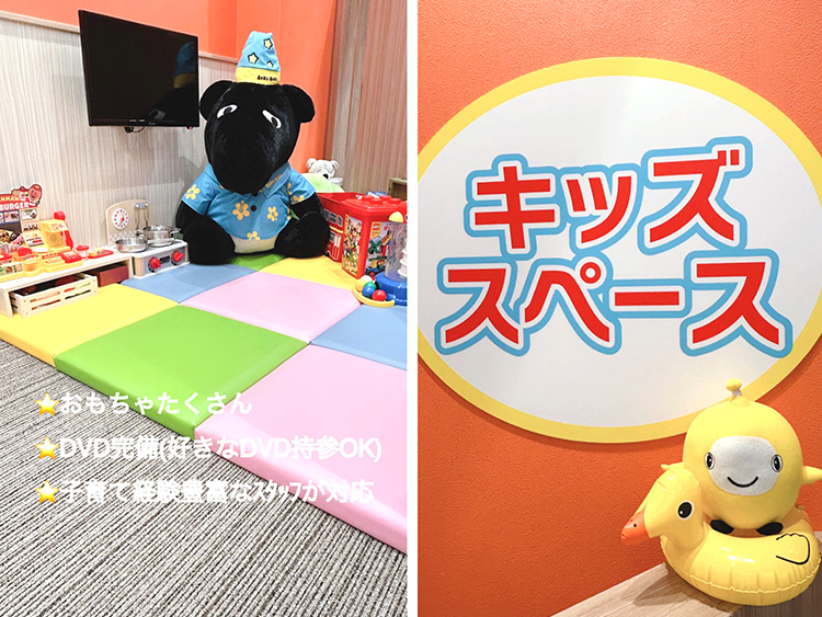 キッズスペース!おもちゃたくさん・DVD完備(好きなDVD持参もOK)・子育て経験豊富なスタッフがお相手!ご面談・ご相談中はお子様もお父様・お母様も安心!