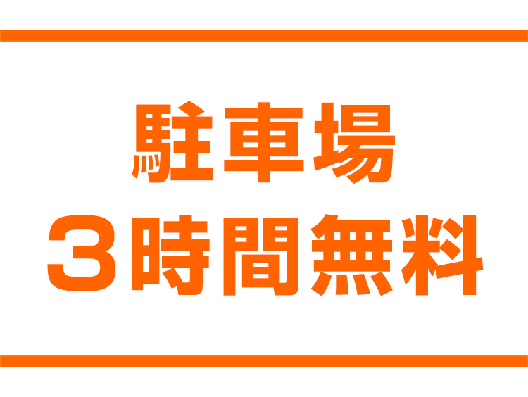 駐車場完備。お車でのお越しも便利です。