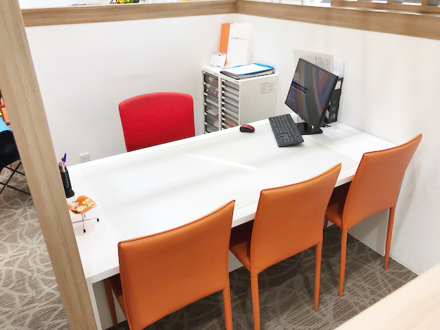 プライバシーに配慮した個別ブースになっておりますので、人目を気にせずゆっくりとご相談いただけます。