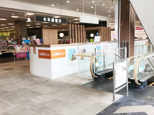 2F「未来屋書店」向いにございます。「ゲオ」や「ダイソー」と同じフロアです。
