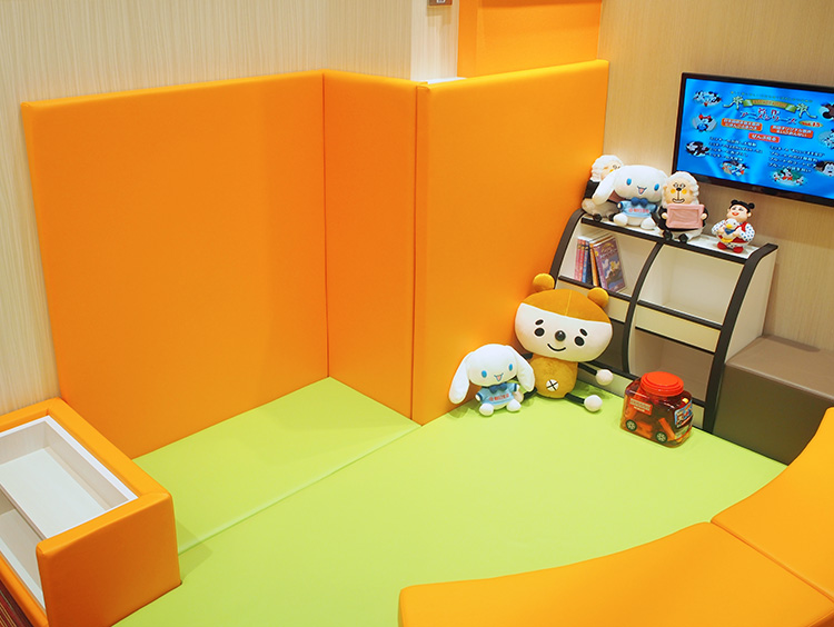 やわらかい素材に囲まれたキッズスペースがございますので、お子様連れでも安心です。