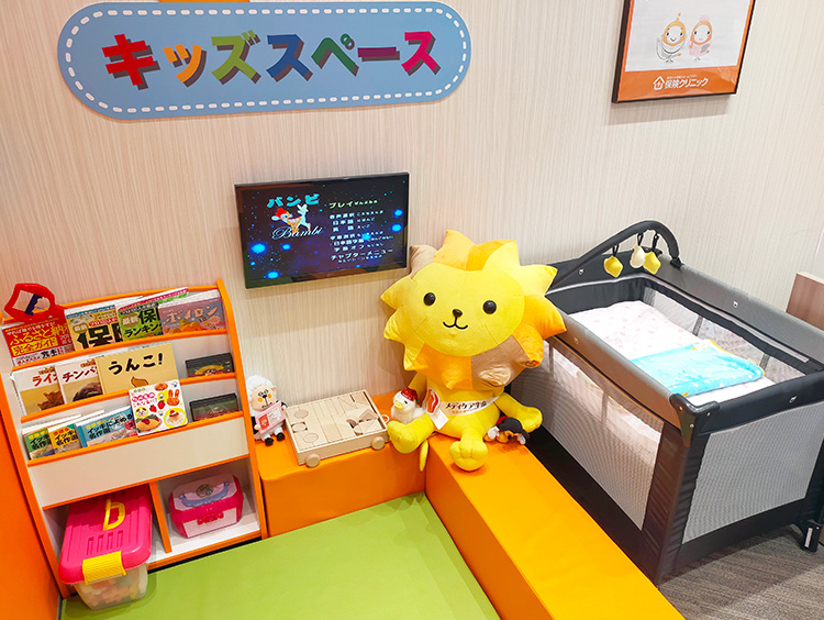 明るく清潔なキッズスペースに、おもちゃや絵本をご用意しています。 定期的にアルコール消毒を実施しています。