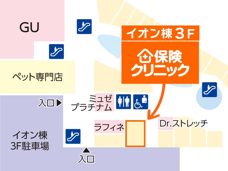 イオンモール大日3Fにございます。お買い物のついでに、お気軽にお立ち寄りください。