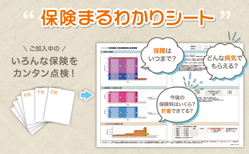 今加入している保険について確認できる保険まるわかりシートが無料で作れます!