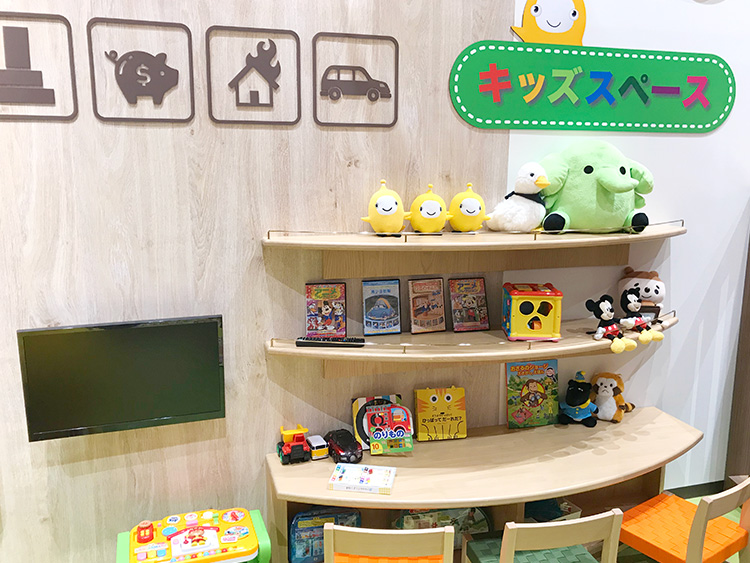 当保険ショップでは、小さなお子さま連れでも安心してご相談いただけるようキッズスペースを完備しています。施設内には「授乳室」や「ベビーベッド」もございますので、ご家族皆さまでも安心してご来店いただけます。