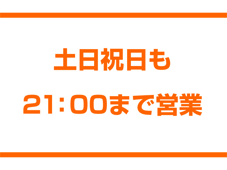 土日祝日も21:00まで営業。お仕事帰りのご相談もお待ちしております。