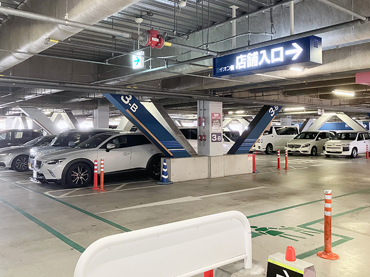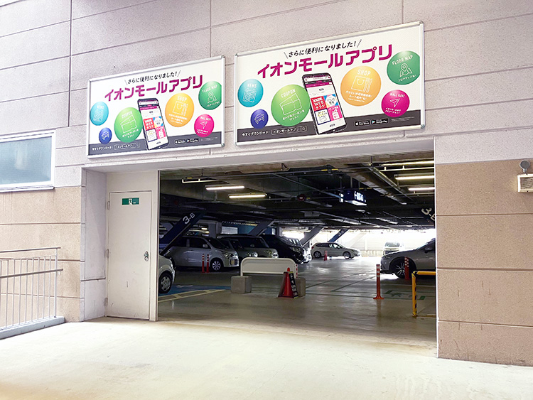 駐車場はどなたでも2時間無料。イオンモールアプリをインストールされている方は、3時間無料です。