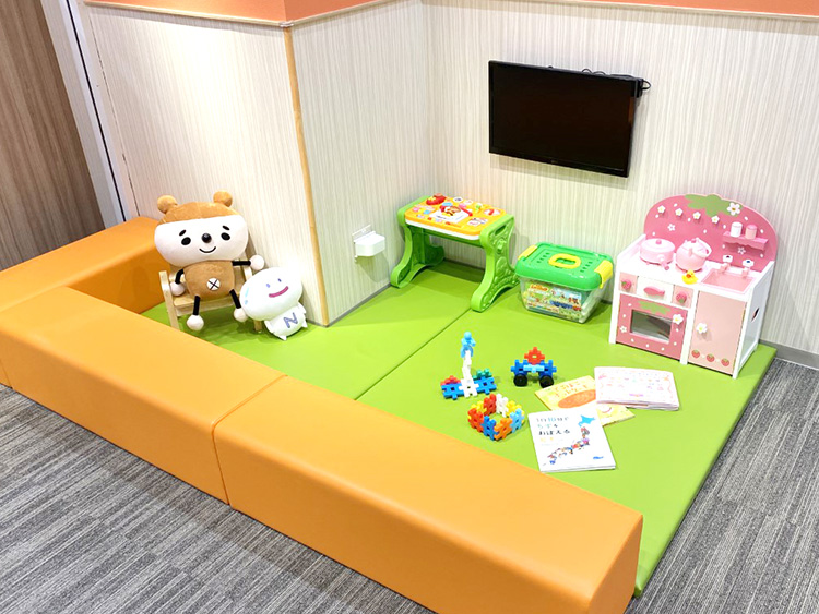 店内にキッズスペースが、施設内に授乳室とベビーベッドがございます。