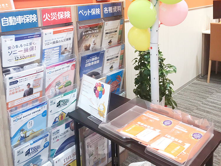 生命保険・損害保険ともに、パンフレットは自由にお持ち帰りいただけます。気になるものはぜひお手に取ってご覧ください。