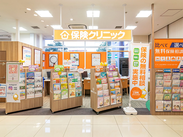 「保険クリニックザ・モール仙台長町店」は、複数の保険会社の商品を比較し、自分にぴったりな保険を選べる保険ショップです。生命保険や損害保険などの見直しや新規加入はもちろん、保険商品の分析や比較を用いてお客様一人ひとりにぴったりな保険プランをご提案します。仙台市営地下鉄「長町南駅」より直結と便利な立地で、長町南や富沢などの太白区をはじめとした多くのお客様にご利用いただいています。