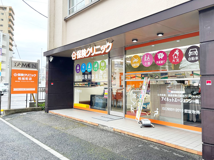 「保険クリニック柏旭町店」は、各保険会社の商品を比較しながら、あなたにぴったりな保険を見つけることができる保険ショップです。お客様のライフステージやニーズに合わせて、生命保険や損害保険の見直しや新規加入をサポートし、お客様1人1人にぴったりな保険プランをご提案いたします。JR常磐線「柏駅」より徒歩約10分と便利な立地で、豊四季台や明原などの柏市からはもちろん、旭町などの千葉市中央区からも多くのお客様にご利用いただいています。駐車場もご用意しておりますので、お車でのお越しも便利です。