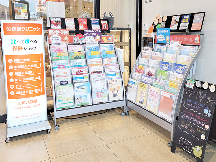 医療保険やがん保険など、各社のパンフレットをお持ち帰りいただけます。