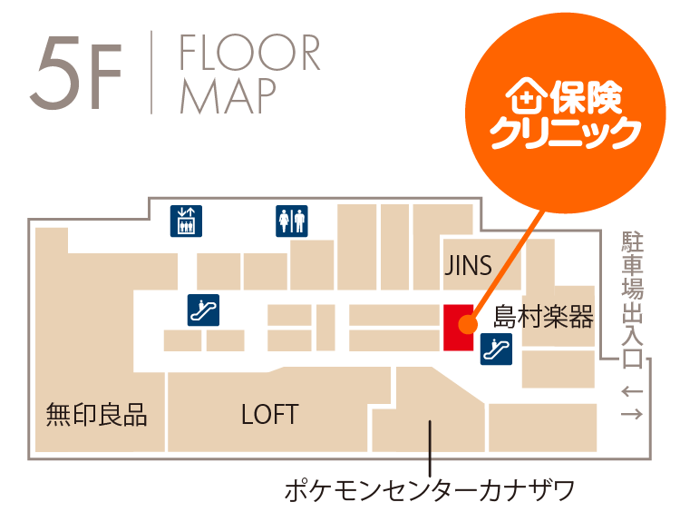 JR北陸本線「金沢駅」より徒歩1分、金沢フォーラス5Fにございます。