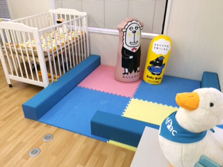 キッズスペースはフカフカのクッションフロア。 ベビーベッドもご用意していますので、赤ちゃんから小学校まで、安心して遊んでいただけます。
