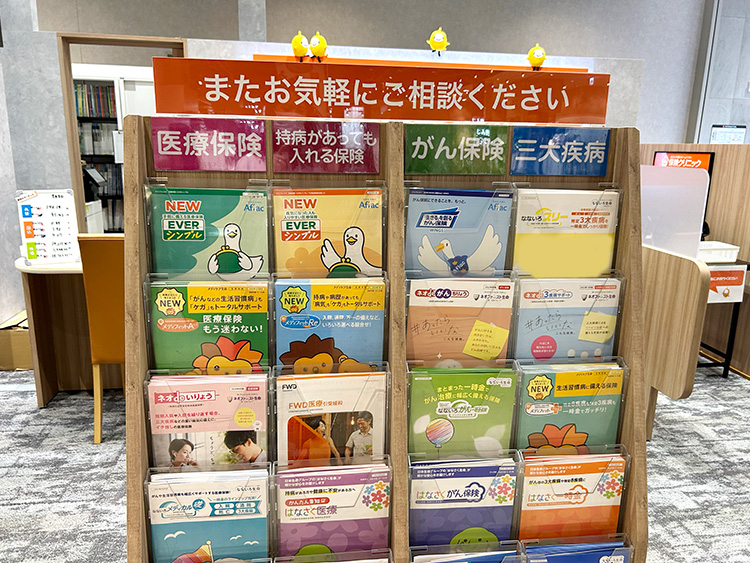 生命保険・損害保険ともに、パンフレットは自由にお持ち帰りいただけます。