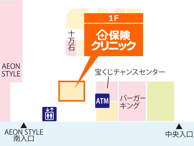 「イオンタウンふじみ野」は「ふじみ野市役所」とコミュニティ通りに隣接するショッピングセンターです。保険クリニックは施設内、「イオンスタイル」や「上福岡郵便局」、「ドトールコーヒー」などがある1Fにございます。ふじみ野市、富士見市、川越市からはもちろん、さいたま市や挟山市、志木市などからも平日・休日問わず多くのお客様がいらっしゃいます。