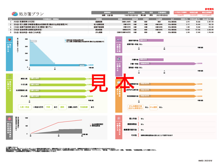 保険クリニック独自のシステムで、加入中の保険をまとめて分析いたします。