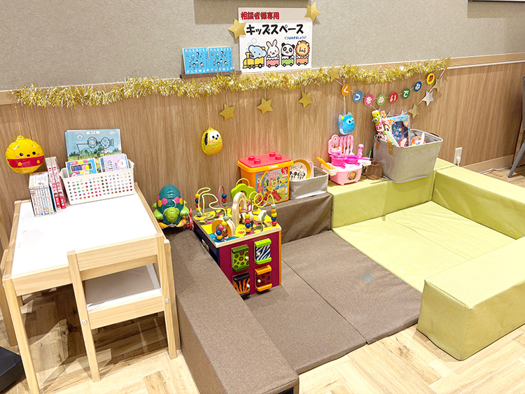 店内にはキッズスペース、施設内にはベビーベッド、授乳室がございます。小さなお子様連れでもお気軽にお問い合わせください。