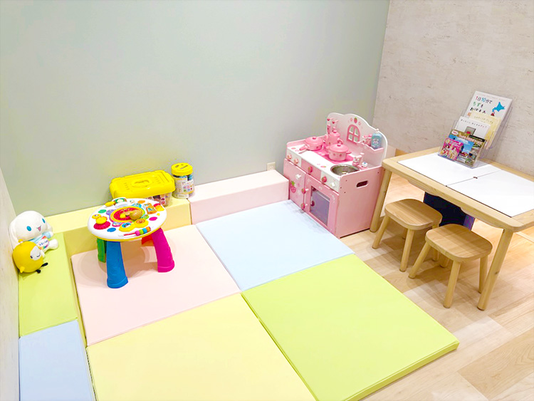 店内にキッズスペース、施設内にベビーベッド、授乳室がございます。小さなお子様連れでもお気軽にお問い合わせください。