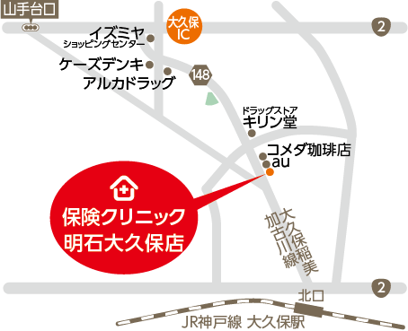 保険クリニック明石大久保店では、複数の保険会社の商品を比較しながら、お客様一人ひとりにぴったりの保険プランを見つけるお手伝いをいたします。ご家族構成や将来設計に基づいて、生命保険や損害保険の新規相談や見直しのご相談を承っておりますのでお気軽にお問い合わせください。JR線「大久保駅」より徒歩約15分の便利な立地で、魚住や西明石、二見町などの明石市からはもちろん、明石駅をご利用される方など多くのお客様にご利用いただいています。