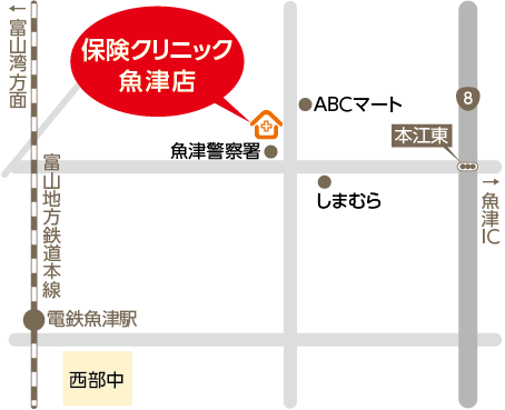 富山地方鉄道本線「電鉄魚津駅」より徒歩約17分、富山県魚津市にございます。