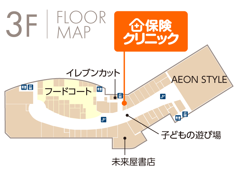 1階中央北入口より目の前のエレベーターで3階目の前にございます。
