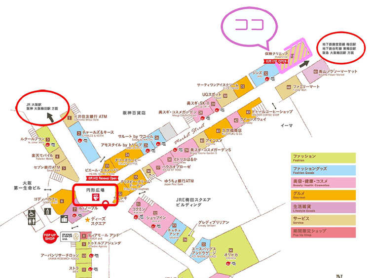 | 〒530-0001 大阪府大阪市北区梅田1丁目大阪駅前ダイヤモンド地下街3号 |