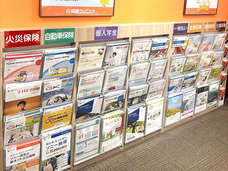また、当店では生命保険、医療保険、がん保険、介護保険、年金保険をはじめとし、相続対策や資産運用、貯蓄、火災保険、自動車保険など、さまざまな保険に関するご相談を承っております。