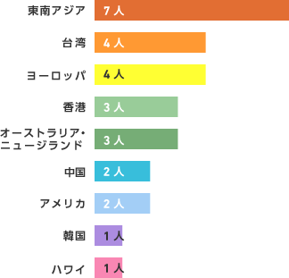 海外旅行を予定している19名に行先を聞いたところ約63%はアジアに集中しています。