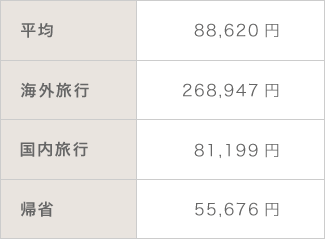 旅行(帰省)を予定している213名に使う費用を聞いたところ、平均が88,620円となりました。