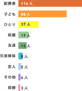 旅行(帰省)を予定している213名に同行者を聞いたところ、1位『配偶者』、2位『子ども』となりました。