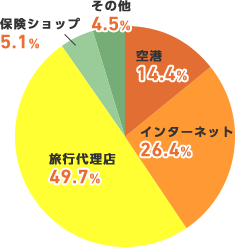 海外旅行保険に加入すると答えた292名にどこで加入するか聞いたところ、49.7%が旅行代理店から加入すると回答しました。
