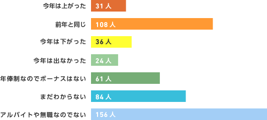 ですが、今年の夏のボーナスについて聞いたところ、「前年より上がった」人より「下がった」もしくは「今年は出なかった」人が上回っていることが分かりました。