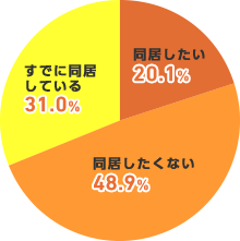 親が生存している432名に親と同居したいか聞いたところ、「同居したい」が20.1%に対して「同居したくない」が48.9%いることが分かりました。