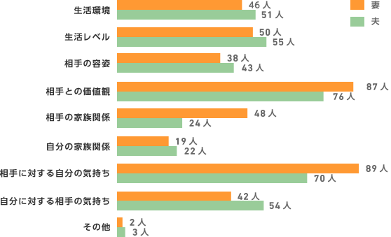 女性の1位は『相手に対する自分の気持ち』、2位は『相手との価値観』
